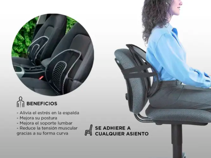 Experimenta la comodidad suprema mientras trabajas o te relajas en tu silla con nuestro Soporte Lumbar. Nuestro soporte lumbar se adapta a la curvatura natural de tu columna vertebral, proporcionando un ajuste perfecto y una comodidad personalizada. No más dolores de espalda ni fatiga; disfruta de h...