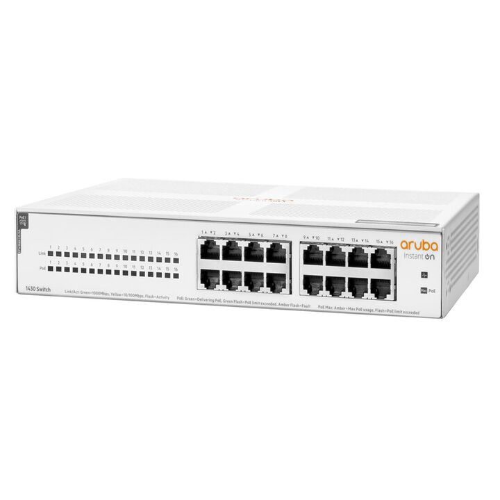 SWITCH HP 1430 16G CL4 POE 124W El conmutador HPE Networking Instant On 1430 es una serie de conmutadores plug-and-play no gestionados para pequeñas empresas que buscan una conectividad de red simple, fiable y de bajo coste. Estos conmutadores fáciles de usar ofrecen capacidades de conmutación Gigab...
