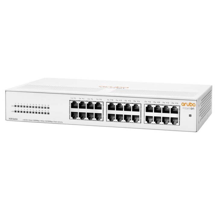SWITCH HP 1430 24G El conmutador HPE Networking Instant On 1430 es una serie de conmutadores plug-and-play no gestionados para pequeñas empresas que buscan una conectividad de red simple, fiable y de bajo coste. Estos conmutadores fáciles de usar ofrecen capacidades de conmutación Gigabit Ethernet d...