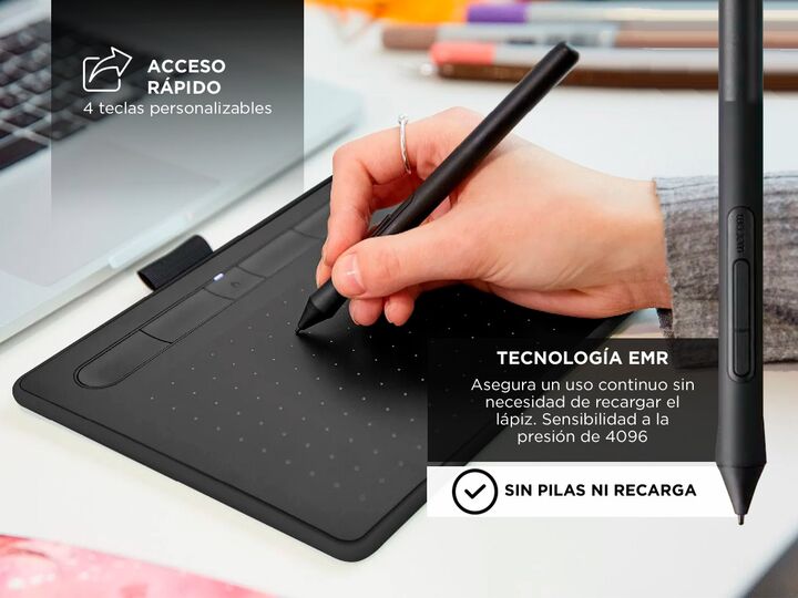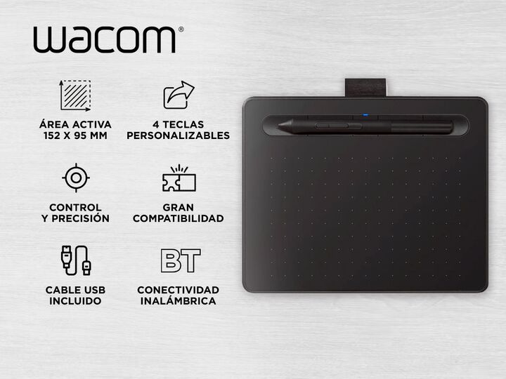 WACOM presenta el lanzamiento de la nueva Tableta Intuos con Bluetooth: Lápiz sin Batería: La tecnología EMR (Resonancia Electromagnética) asegura un uso continuo sin necesidad de recargar el lápiz. 4 Teclas ExpressKeys Personalizables: Configura las teclas de acceso rápido para mejorar tu productiv...
