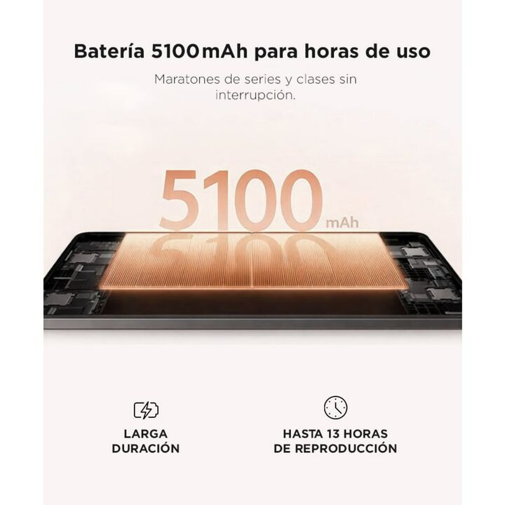 Pantalla amplia de 8.7” HD con 90 Hz: Videos, navegación y estudio sin esfuerzo. 4 GB RAM + 64 GB almacenamiento: Espacio y fluidez, expandible hasta 2 TB con microSD. Procesador Octacore y Android 15: Fluidez para apps, juegos y tareas diarias. Sonido Dolby + cámara frontal 5 MP: Streaming, videoll...