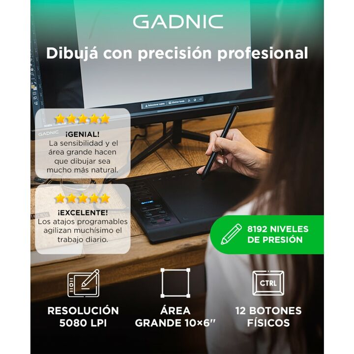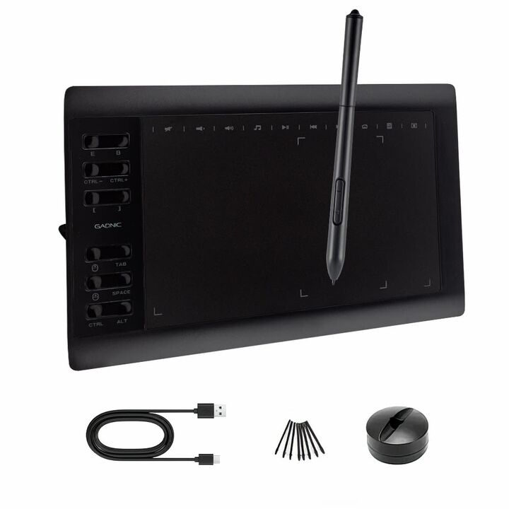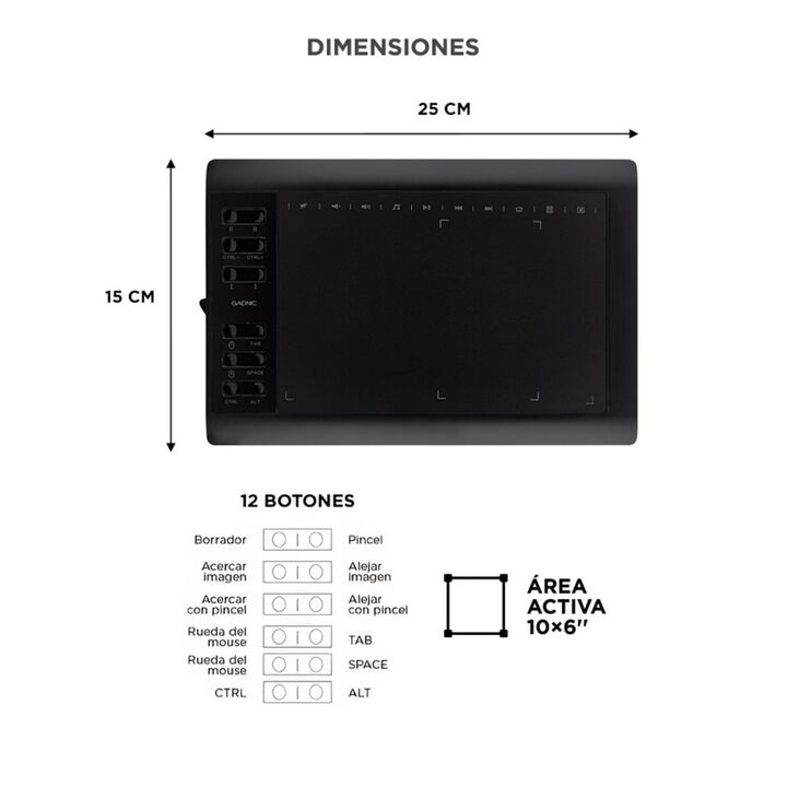 ¡Nueva Tableta Gráfica Gadnic! Con un área de dibujo de 10 x 6 pulgadas (25 x 15 cm), esto es casi equivalente a una computadora de 13 pulgadas, lo que le permite tener un espacio más grande y libre para mostrar sus talentos. El lápiz sensible a la presión presentado tiene 8192 niveles de sensibilid...