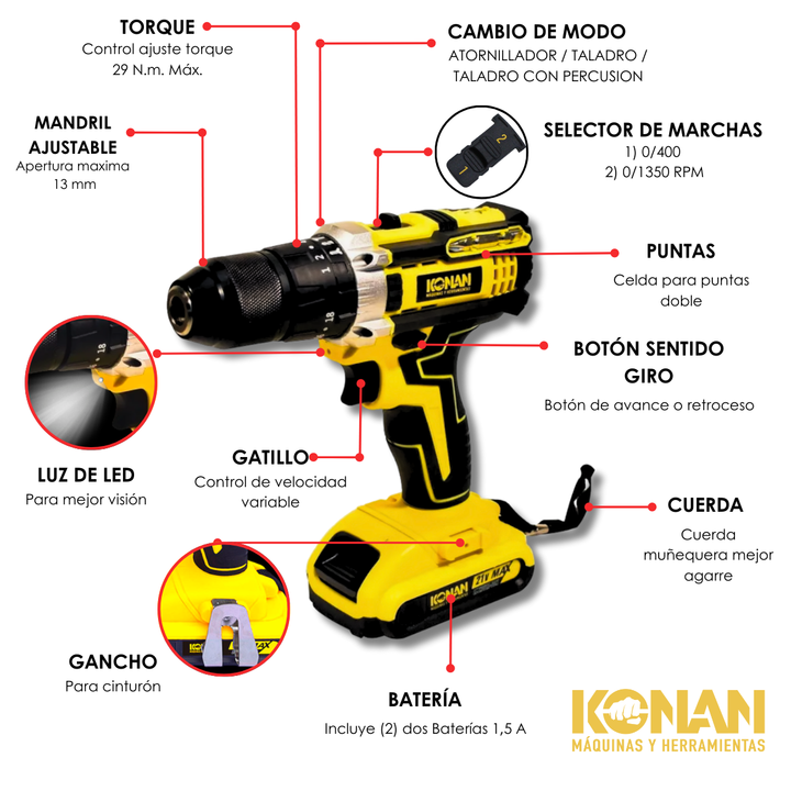 Con el taladro eléctrico Konan KTB/1321 podrás realizar múltiples tareas en diversas superficies de un modo práctico y sencillo.
