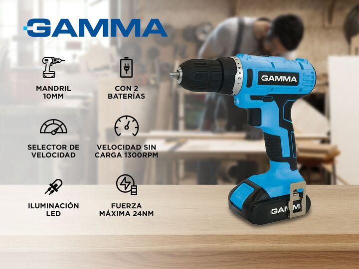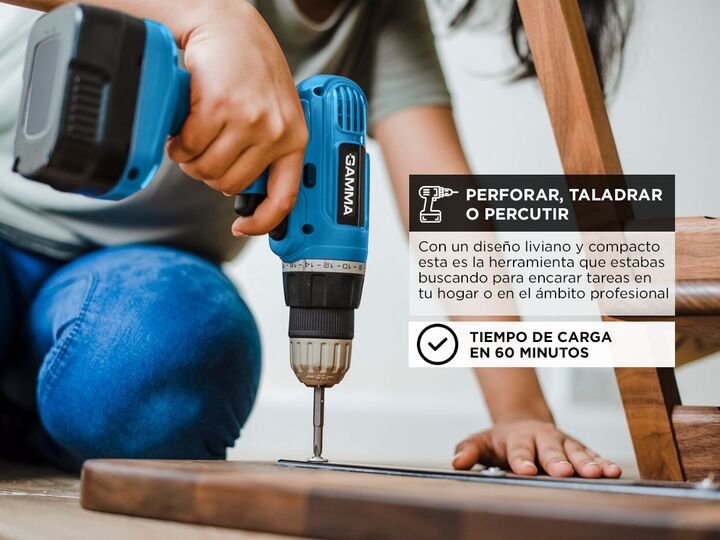 Con los taladros Gamma podrás perforar, taladrar o percutir distintos tipos de materiales. Con un diseño liviano y compacto esta es la herramienta que estabas buscando para encarar tareas en tu hogar o en el ámbito profesional. Especificaciones Tiempo de carga: 60 minutos. Capacidad de mandril: 10 m...