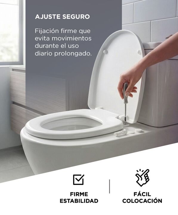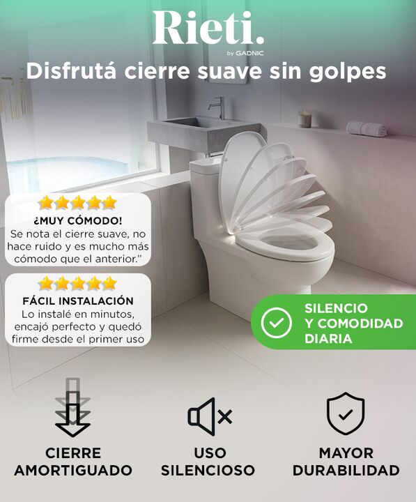 Cierre suave para mayor confort diario: El asiento para inodoro RIETI by Gadnic con sistema soft close permite un cierre progresivo que evita golpes bruscos. Mejora la experiencia de uso y reduce ruidos molestos en el hogar. Instalación simple sin complicaciones: El asiento para inodoro RIETI by Gad...