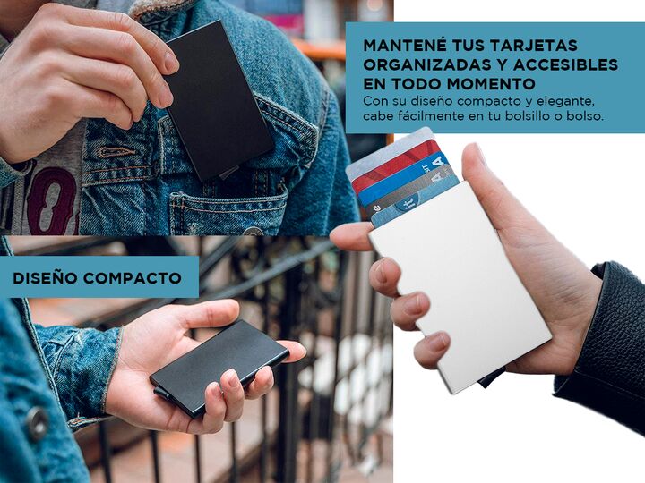 ¡Presentamos el increíble Tarjetero Automático de Aluminio Gadnic! Olvídate de los abultados billeteros y descubre la comodidad y estilo que este producto tiene para ofrecerte. ¿Estás cansado de llevar una cartera pesada y desorganizada? Nuestro Tarjetero Automático de Aluminio es la solución perfec...