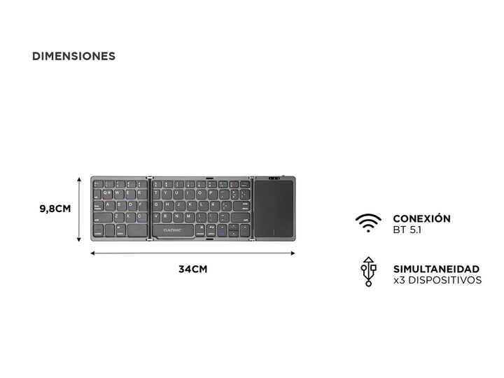 ¡Descubrí la máxima portabilidad y eficiencia con nuestro teclado inalámbrico plegable! Diseñado para los profesionales en movimiento, este teclado ultra delgado se pliega en tres partes, reduciendo su tamaño. Podes llevarlo fácilmente en tu bolso sin preocuparte por el espacio o el desgaste diario,...
