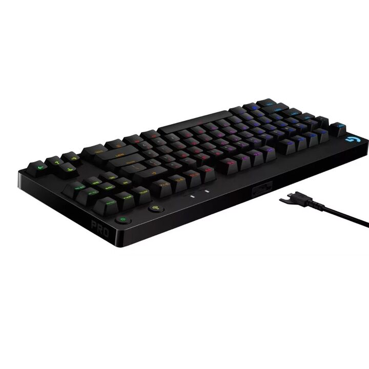 -TECLADO LOGITECH G PRO MECANICO GAMING Idioma: Inglés US Layout: QWERTY Color de la retroiluminación: RGB Función antighosting incorporada. Tipo de teclado: mecánico. Tecla cilíndrica. Con conector USB. Con cable removible. Medidas: 361mm de ancho, 153mm de alto y 34mm de profundidad. Característic...