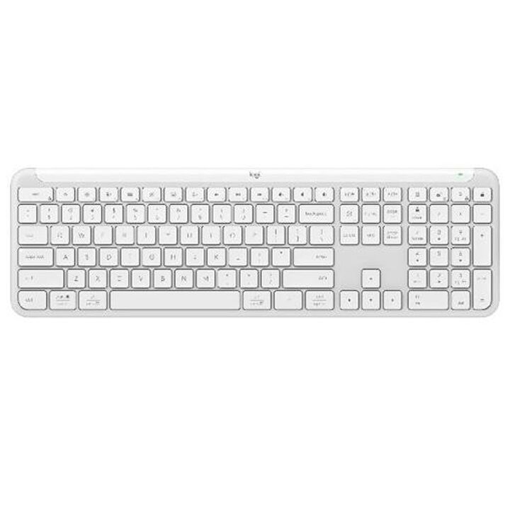 TECLADO LOGITECH K950 SLIM WHITE BT Teclado Altura: 134,8 mm Ancho: 433,8 mm Profundidad: 23,1 mm Peso (con batería): 685g |(sin pilas, sin receptor): 662.6g Especificaciones técnicas Teclado con baterías Tipo de batería: No recargables, alcalinas Número de pilas|baterías: 2 AAA Duración de baterías...