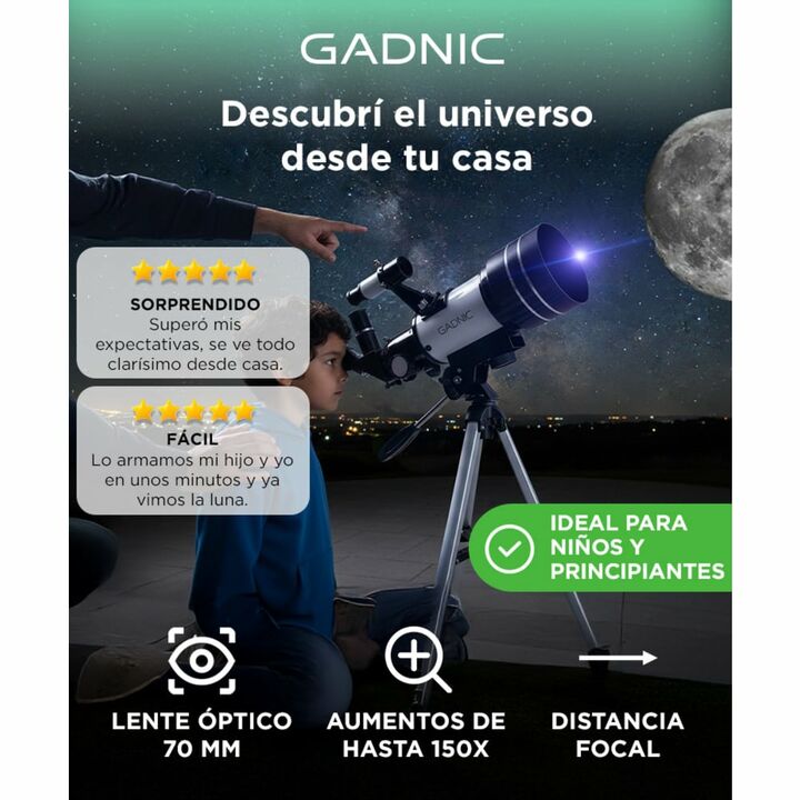 ¡Gadnic presenta su nueva linea de Telescopio Reflector! Nuestro telescopio para principiantes está diseñado para niños y principiantes, dándoles la oportunidad de observar el universo de cerca con equipos profesionales para la mejor experiencia de observación de estrellas. Este telescopio portátil ...