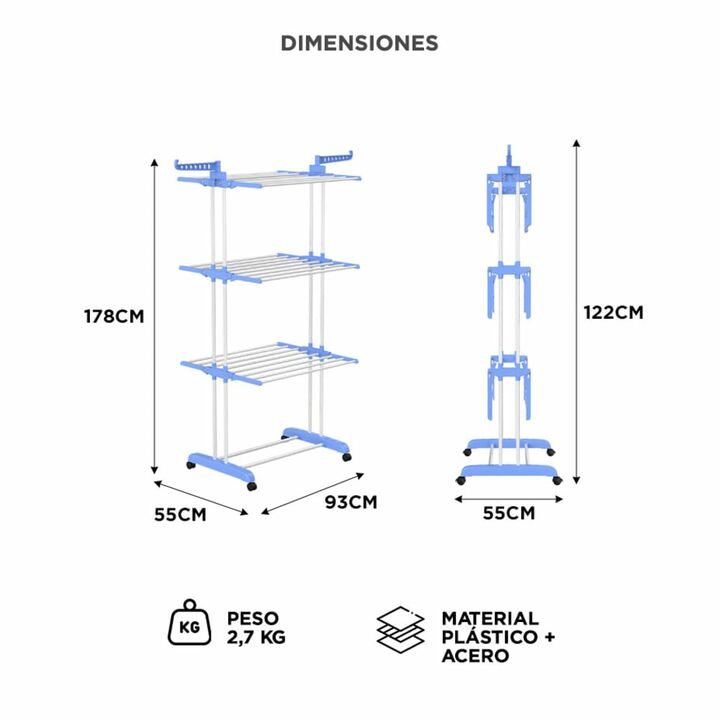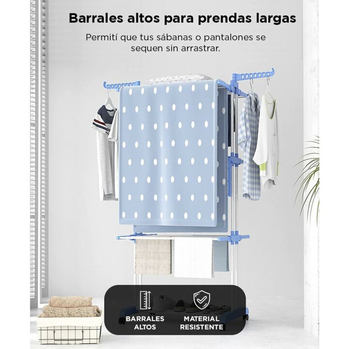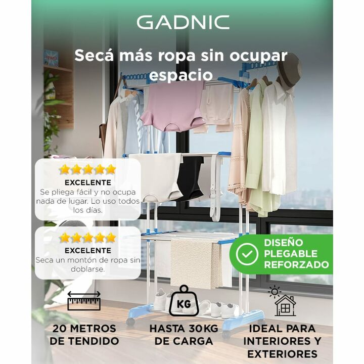 20 metros lineales de tendido Secá más prendas por tanda sin ocupar más espacio. Ideal para familias o uso diario. Diseño plegable ultra compacto Guardalo detrás de una puerta o en un rincón. Se pliega en segundos. Soporta hasta 30kg sin deformarse Su estructura reforzada lo hace apto para ropa pesa...