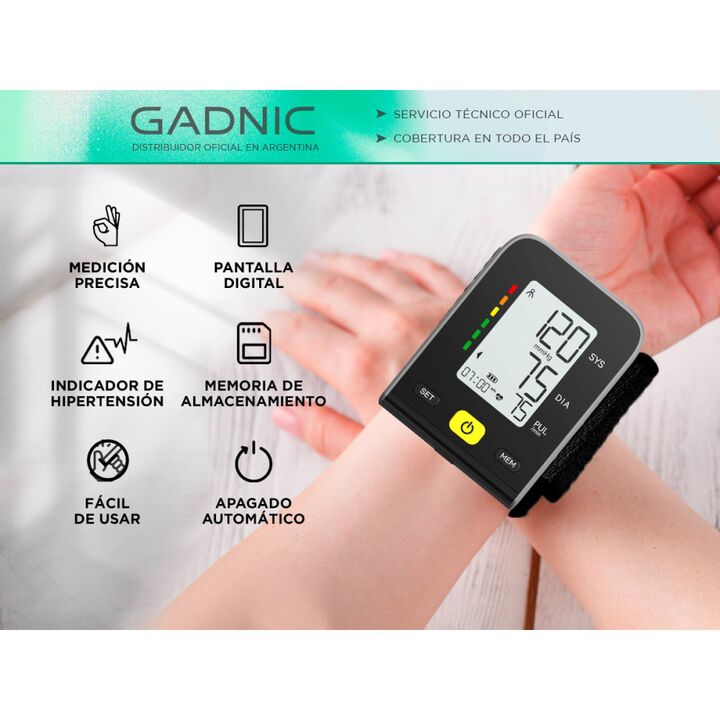 Gadnic presenta el nuevo Tensiómetro de Presión Arterial digital de Muñeca: Medición Precisa y Rápida: Equipado con sensores de última generación, el monitor proporciona mediciones precisas de la presión arterial sistólica y diastólica, así como del pulso, en cuestión de segundos. El diseño ergonómi...