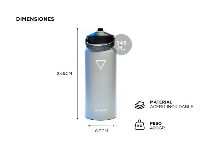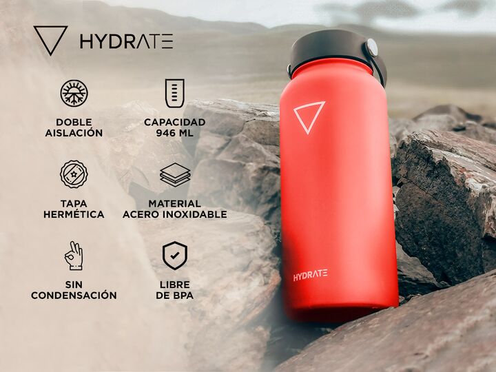 Termo Hydrate 946ml Frio Calor Acero Inoxidable Rosa