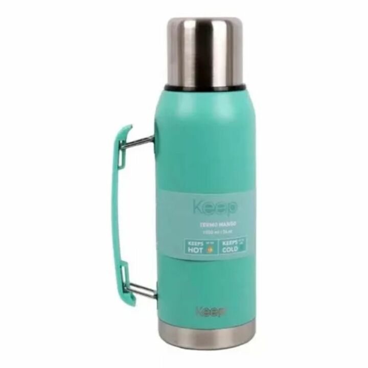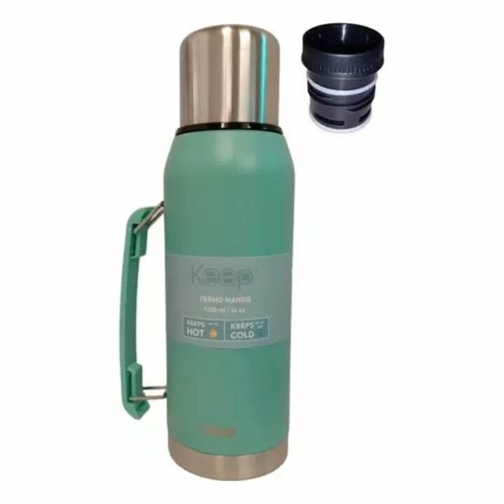 El Termo Keep 1 Litro con manija combina gran capacidad, resistencia y comodidad de transporte. Fabricado en acero inoxidable de doble pared, mantiene la temperatura por varias horas y su asa ergonómica facilita el traslado y el cebado del mate.