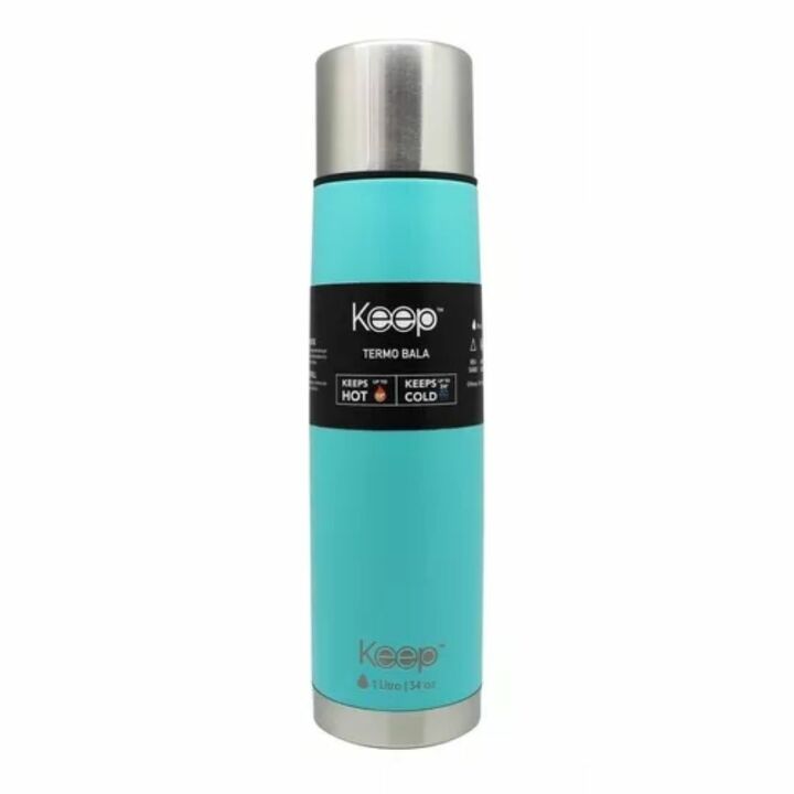 Termo Tipo Bala Rubber Keep 1000ml Aceero Inox Color Celeste