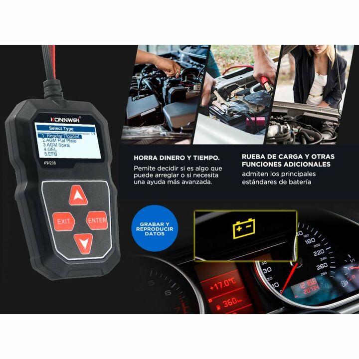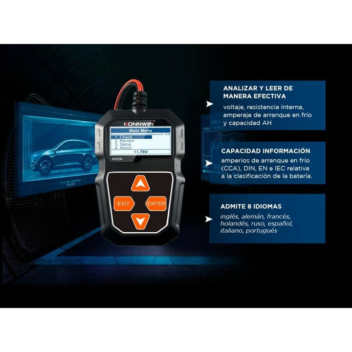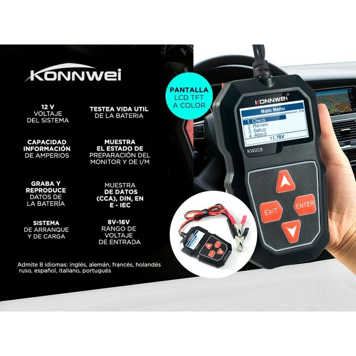 El probador de batería de automóvil KONNWEI KW208 12V puede analizar y leer de manera efectiva datos importantes del automóvil, como voltaje, resistencia interna, amperaje de arranque en frío y capacidad AH, salud de la batería y estado de carga. Proporciona resultados precisos, calcula la capacidad...
