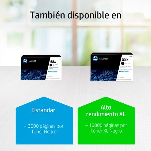 Cartucho de tóner original HP 58A LaserJet negro (CF258A) Mejor juntos. Mejores resultados. Los cartuchos originales HP son los únicos desarrollados especialmente para impresoras HP, ofreciendo calidad confiable, resultados consistentes y rendimiento uniforme. Ahorro de energía con HP EcoSmart Impri...