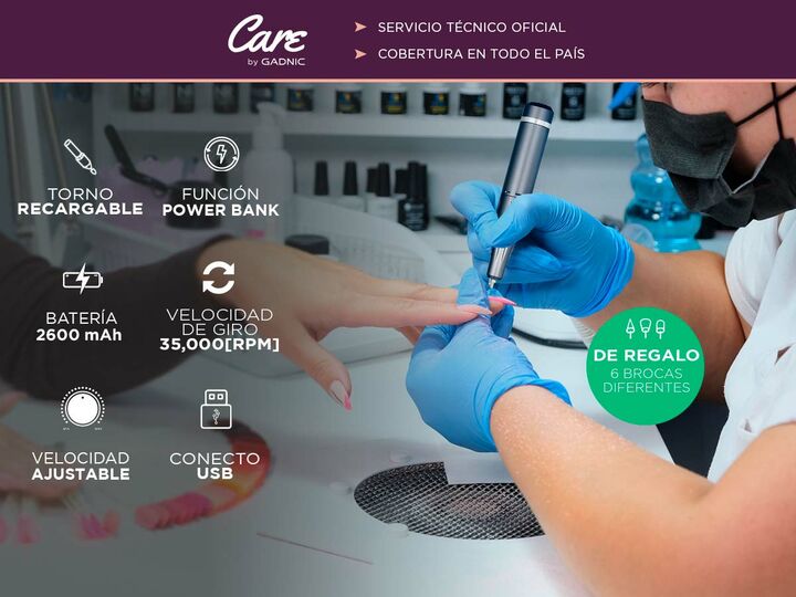 Especificaciones Torno Eléctrico de Uñas Gadnic Portatíl 35000 RPM Velocidad Ajustable - MANI0039 Display led: Sí Portatíl: Sí Función power bank Velocidad ajustable Conector USB Puerto de carga ------------------------------------------------------------------------------------------- Cabina Para U...