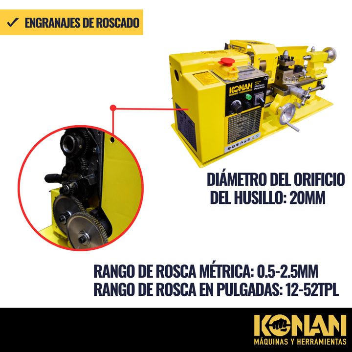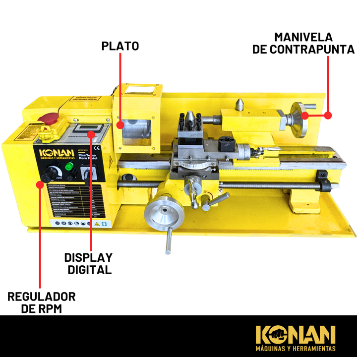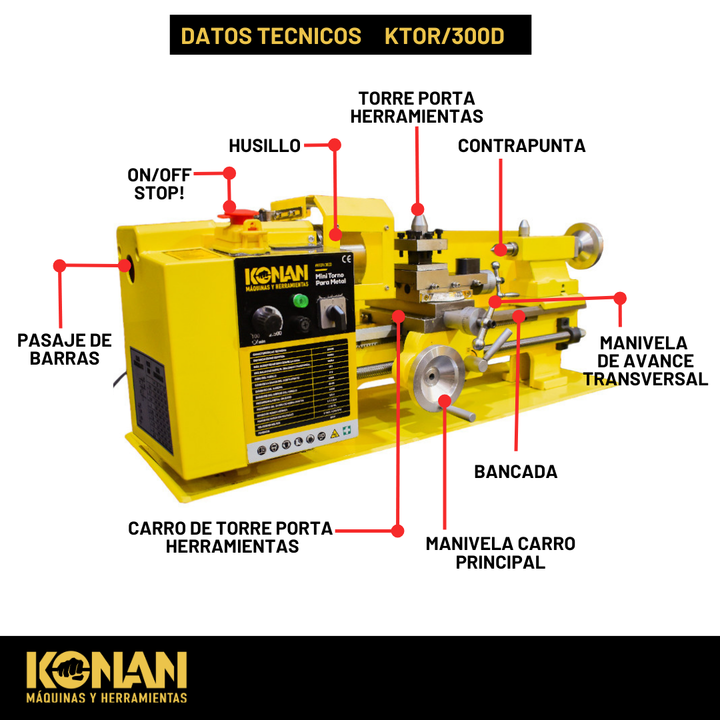 El Torno Mecánico Paralelo 300 mm 400 W Konan es una máquina herramienta ideal para talleres mecánicos, metalúrgicos y aficionados que necesitan precisión y versatilidad en el mecanizado de piezas metálicas. Con su potente motor y diseño robusto, permite ejecutar operaciones de torneado, roscado y a...