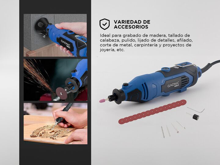 ¡ Gadnic presenta su nueva linea de Herramienta rotativa eléctrica ! Herramienta de manualidades de alto rendimiento Gadnic. Herramienta giratoria eléctrica con cable de 135 W/1,2 Amp que dura más tiempo. Ideal para grabado de madera, tallado de calabaza, pulido, lijado de detalles, molienda, afilad...