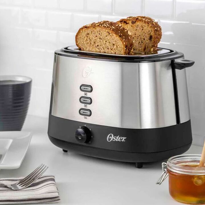 LA MEJOR MANERA DE COMENZAR EL DÍA Duplicá la practicidad en tu cocina a la hora de preparar el desayuno con la tostadora de dos rebanadas Oster con 7 ajustes de tostado. • Diseño sofisticado en acero inoxidable, que ofrece resultados rápidos y deliciosos • 7 ajustes de tostado, desde más claro hast...