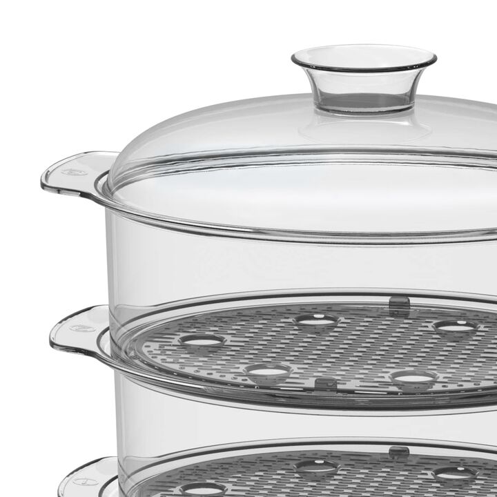 VAPORERA CON CONTROL DIGITAL850W de potenciaControl digital de funcionesCapacidad total 85 litrosVapor instantaneo para una coccion mas rapida3 recipientes apilables para cocinar al vapor varios alimentos a la vezRejillas desmontables con cavidad para huevosRecipientes plegables para un facil guarda...