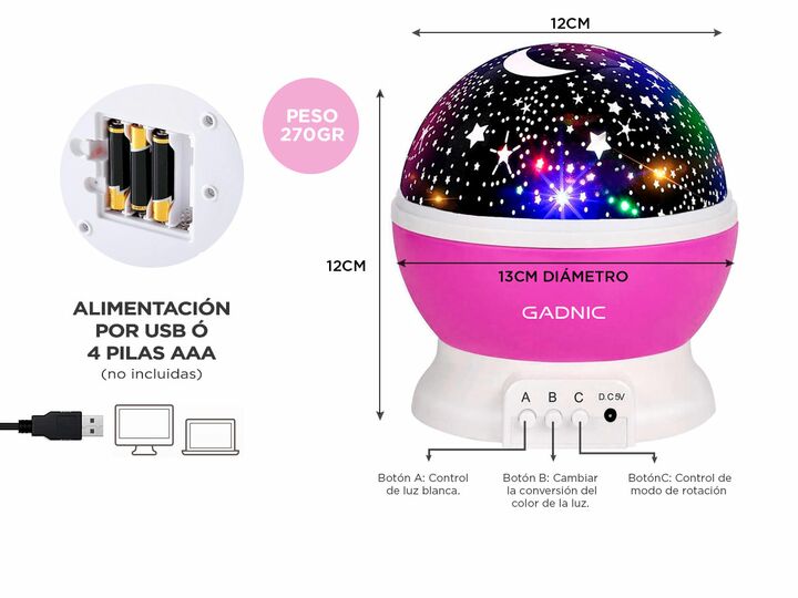 ¡GADNIC presenta su nuevos proyectores luminosos ! Éste proyector de estrellas es ideal para la habitación de un bebé, de un niño, para decorar bodas, cumpleaños y otras fiestas. Es un gran velador romántico y decorativo. El STAR3 de GADNIC es una luz innovadora que proyecta la luz de las estrellas ...