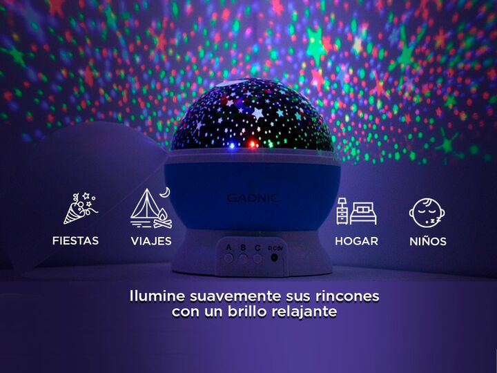 ¡GADNIC presenta su nuevos proyectores luminosos ! Éste proyector de estrellas es ideal para la habitación de un bebé, de un niño, para decorar bodas, cumpleaños y otras fiestas. Es un gran velador romántico y decorativo. El STAR3 de GADNIC es una luz innovadora que proyecta la luz de las estrellas ...