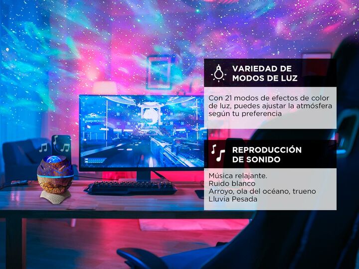 ¡Transforma tu espacio en un universo de magia y relajación con nuestra lámpara proyectora de estrellas! Con su función de proyección de cielo estrellado y reproducción de música, esta lámpara ofrece una experiencia sensorial completa. Disfruta de la belleza de las estrellas mientras escuchas tus ca...
