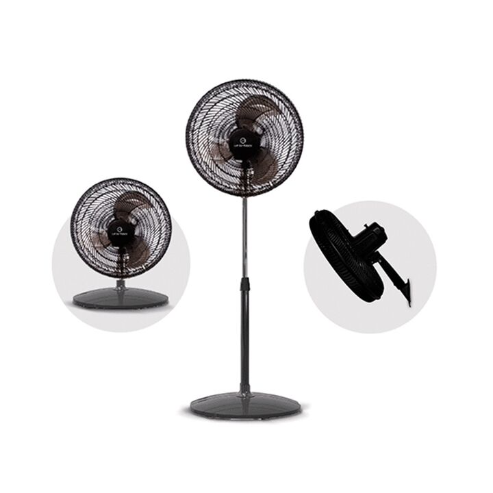 Motor reforzado. Barral telescópico metálico. Base redonda. Soporte para pared y adaptador para turbo. 3 velocidades. 18. 3 en 1 - Cabezal Oscilante y Reclinable