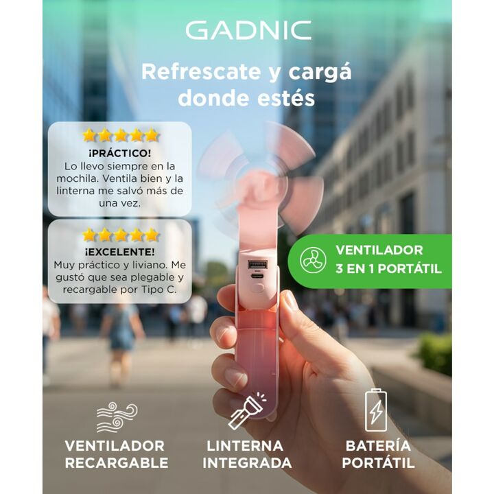 Acerca de Ventilador Portátil Gadnic 3 en 1 ¡Te presentamos el Ventilador Portátil, la solución perfecta para mantener frescura y comodidad en cualquier lugar! Con su triple función, este versátil dispositivo te ofrece no solo la refrescante brisa de un ventilador, sino también la utilidad de un prá...