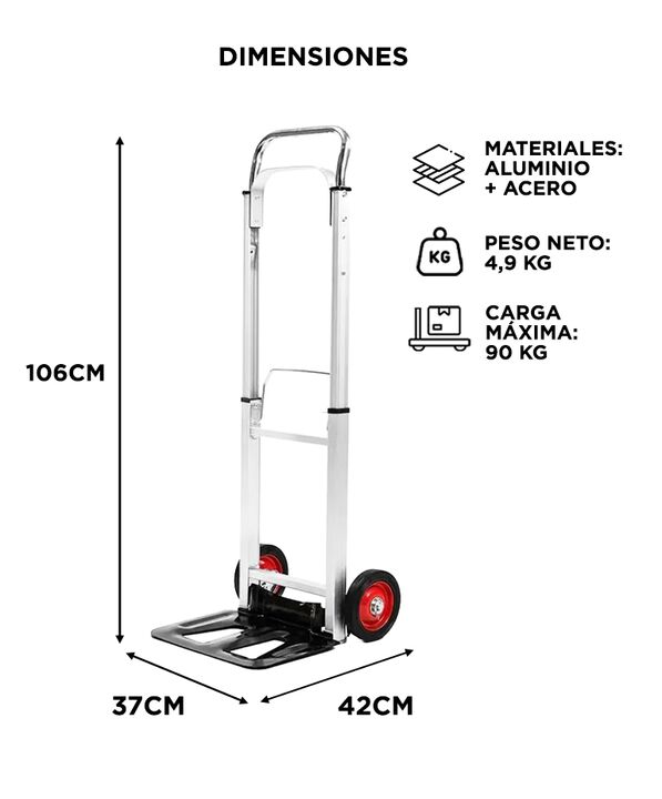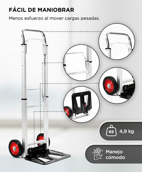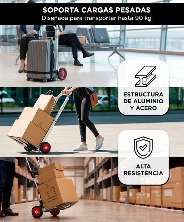 Alta capacidad de carga para mover objetos pesados La zorra de aluminio Bron By Gadnic soporta hasta 90 kg, permitiendo trasladar cajas, bultos y mercadería de forma segura y estable. Estructura de aluminio y acero resistente Combina materiales durables que brindan firmeza durante el uso, manteniend...